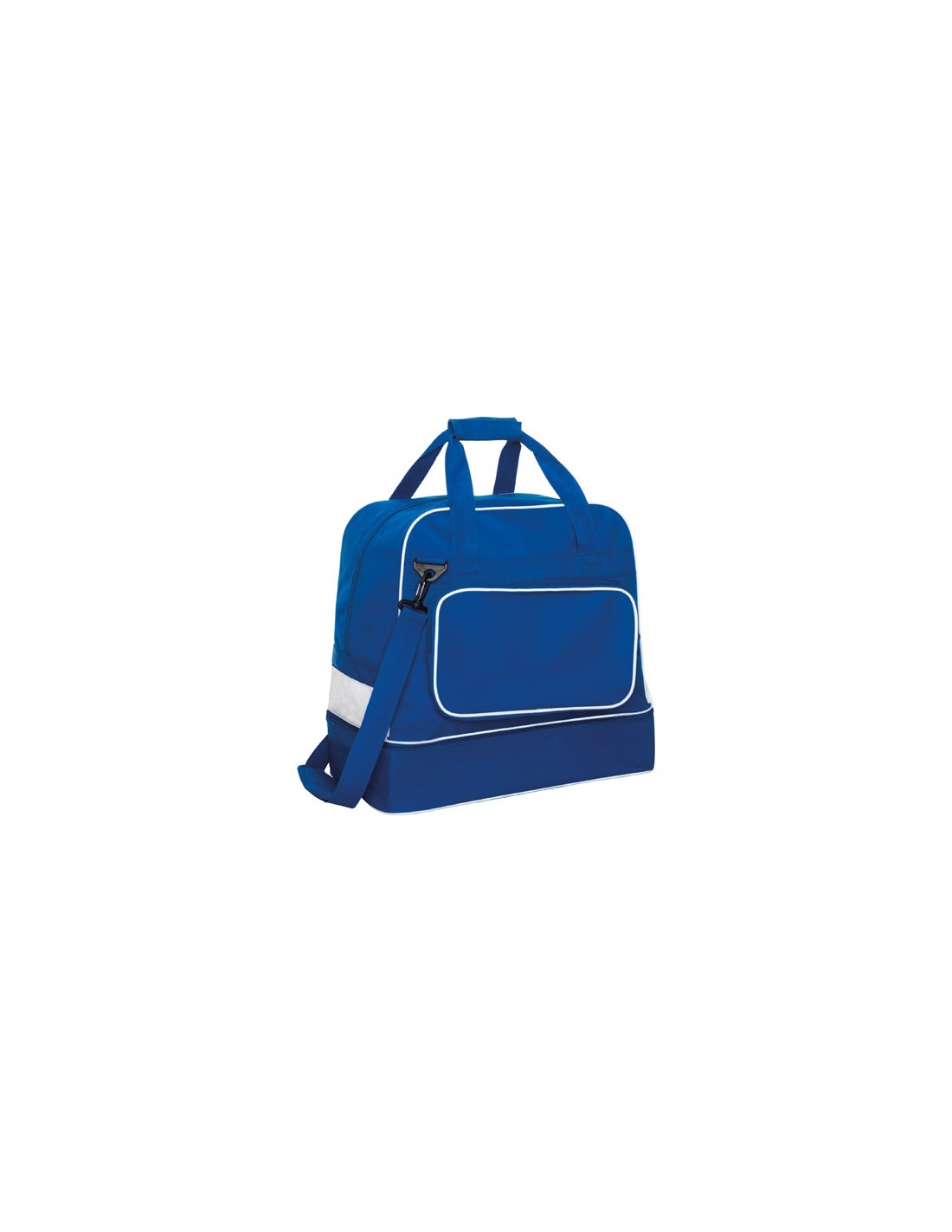 Bolsa deportiva doble asa para colgar y bolsillo frontal con cremallera. Doble fondo reforzado y cremallera para zapatillero. Anti-humedad. Base con tacos. Fácil limpieza.