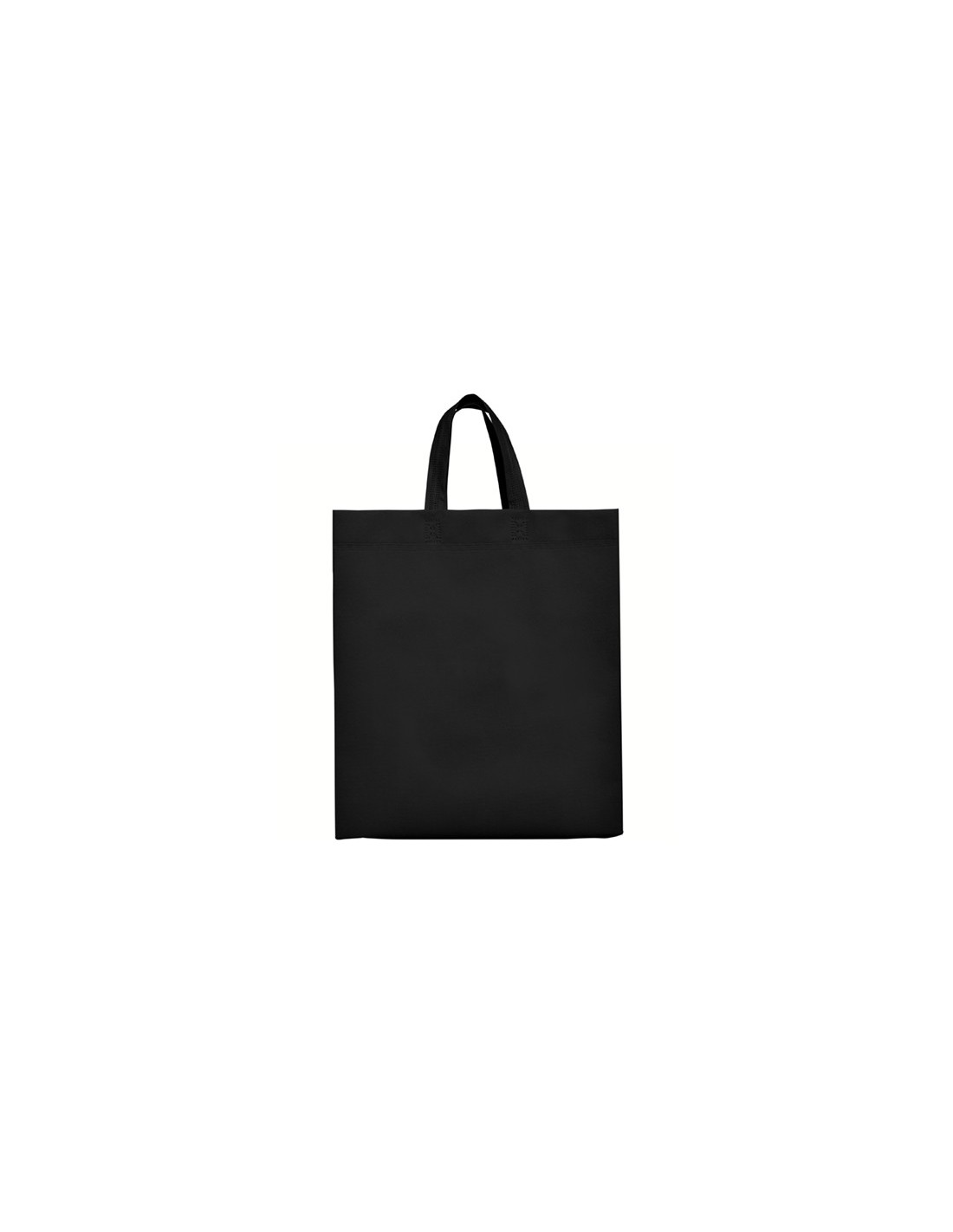 Bolsa termosellada con fuelle en los laterales y en la base, fabricada en tejido non woven (no tejido), con asa corta de cinta en el mismo color.