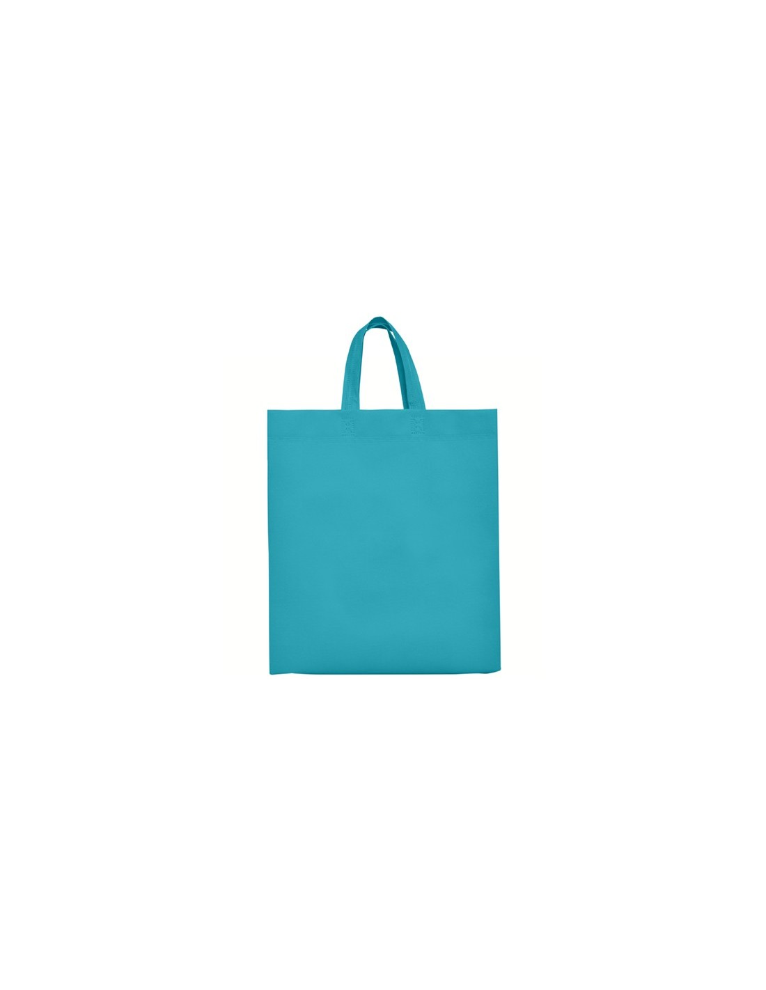 Bolsa termosellada con fuelle en los laterales y en la base, fabricada en tejido non woven (no tejido), con asa corta de cinta en el mismo color.
