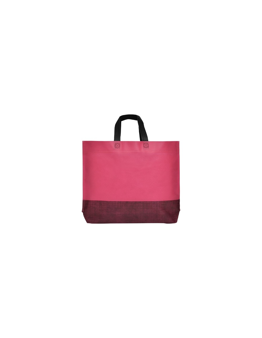 Bolsa termosellada con fuelle hexagonal en la base, fabricada en tejido non woven (no tejido), en color combinado, con asa corta de cinta en color negro.