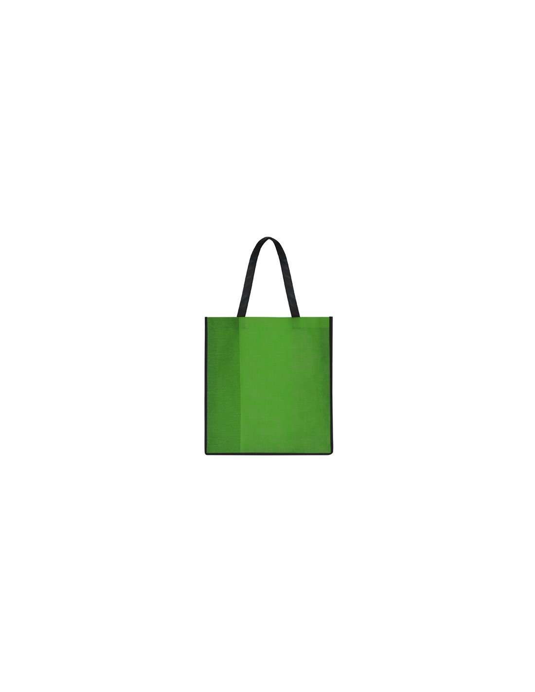 Bolsa cosida combinada en tejido non woven (no tejido) con efecto metalizado y poliéster jaspeado. Asa larga de cinta, fuelle y ribeteado en tejido non woven de color negro. .