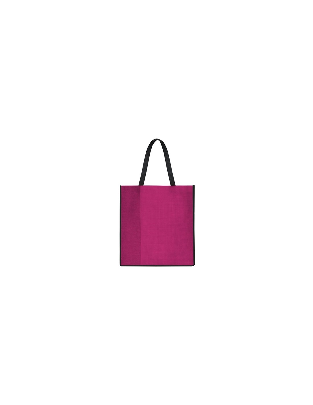 Bolsa cosida combinada en tejido non woven (no tejido) con efecto metalizado y poliéster jaspeado. Asa larga de cinta, fuelle y ribeteado en tejido non woven de color negro. .