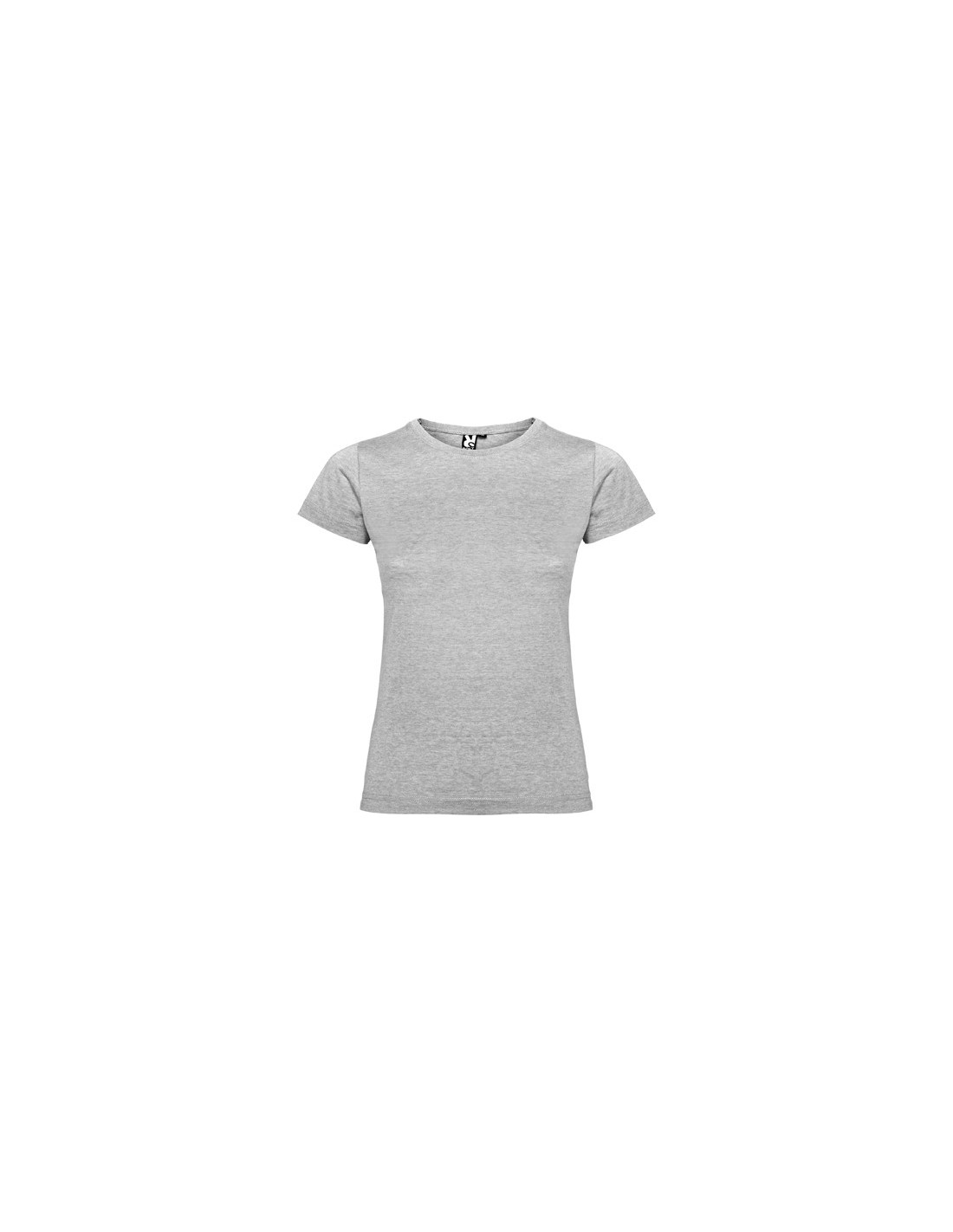 Camiseta de manga corta entallada. Cuello redondo de dos capas en canalé 1x1 con cubre costuras de hombro a hombro. Costuras laterales.