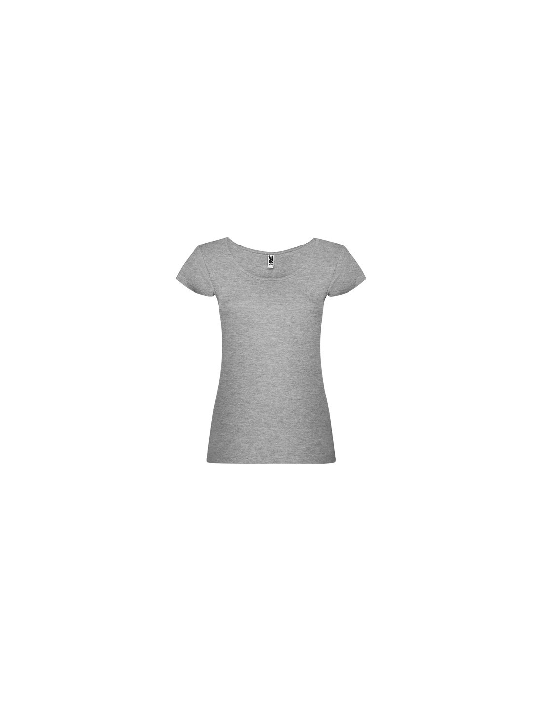 Camiseta de manga corta, escote redondo, ribeteado y pronunciado. Costuras laterales y de corte ajustado.