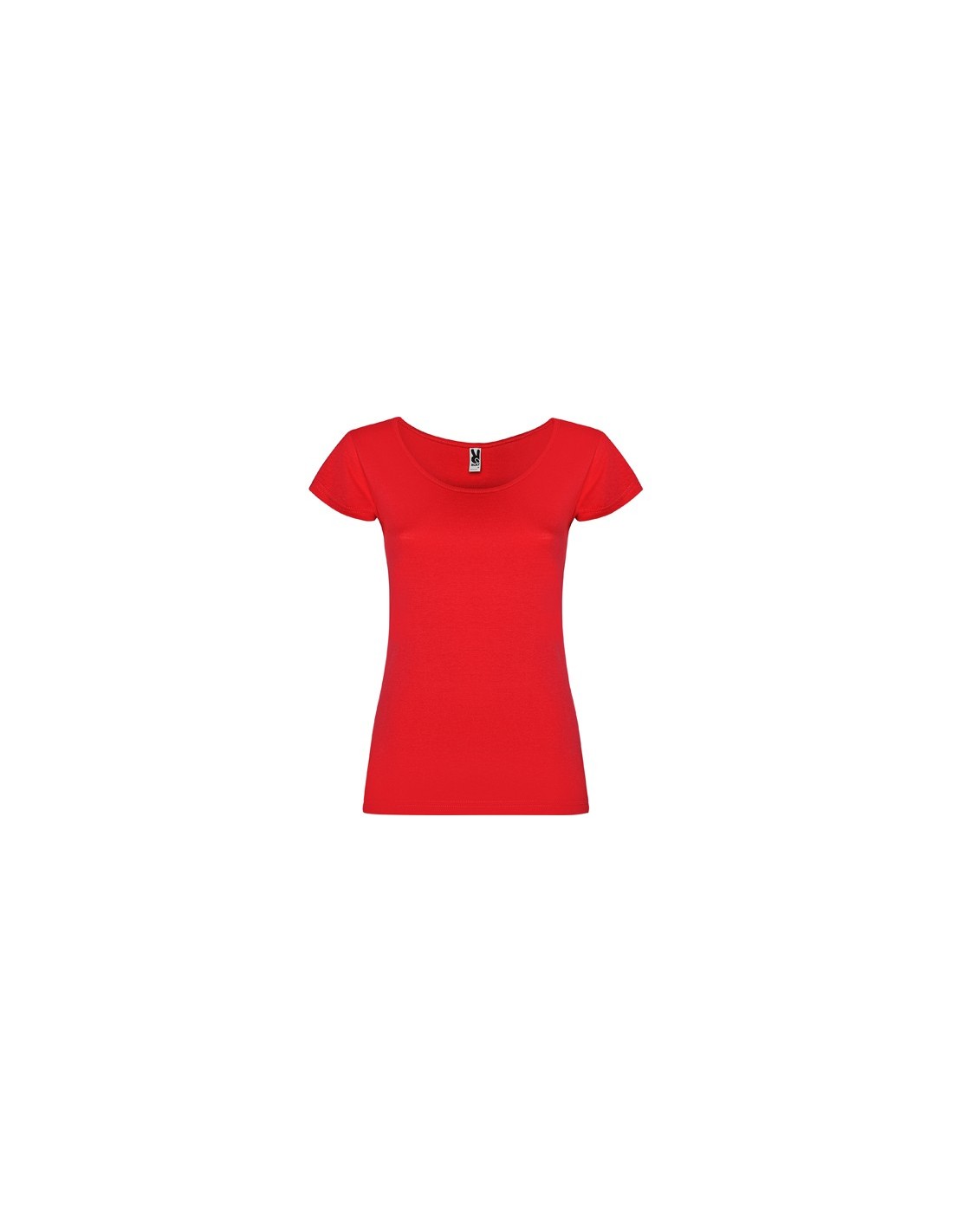 Camiseta de manga corta, escote redondo, ribeteado y pronunciado. Costuras laterales y de corte ajustado.
