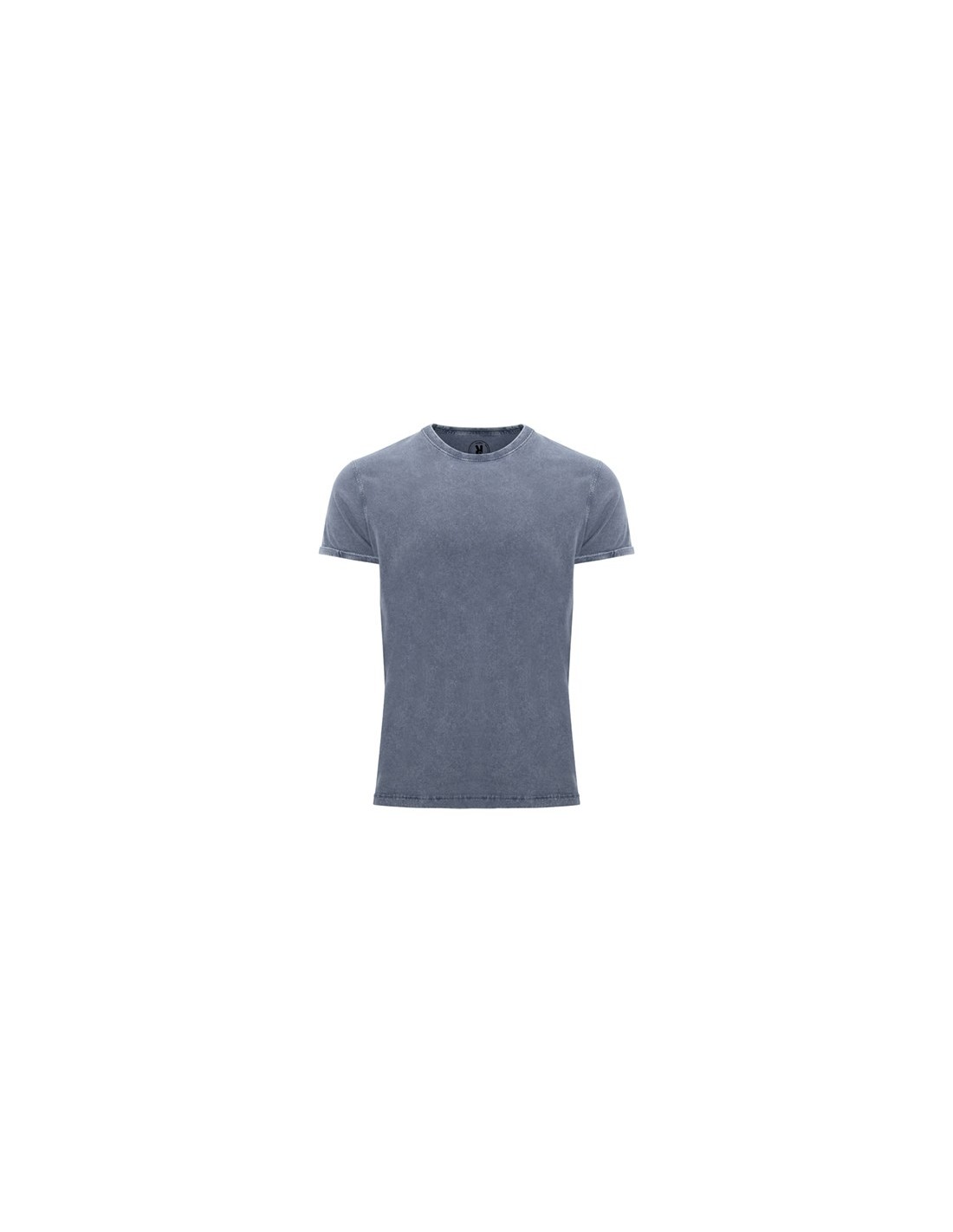 Camiseta de manga corta efecto jeans. Cuello redondo en canalé 1x1, con cubrecosturas de refuerzo interior de hombro a hombro. Doble costura en sisas. Apertura de manga con dobladillo.