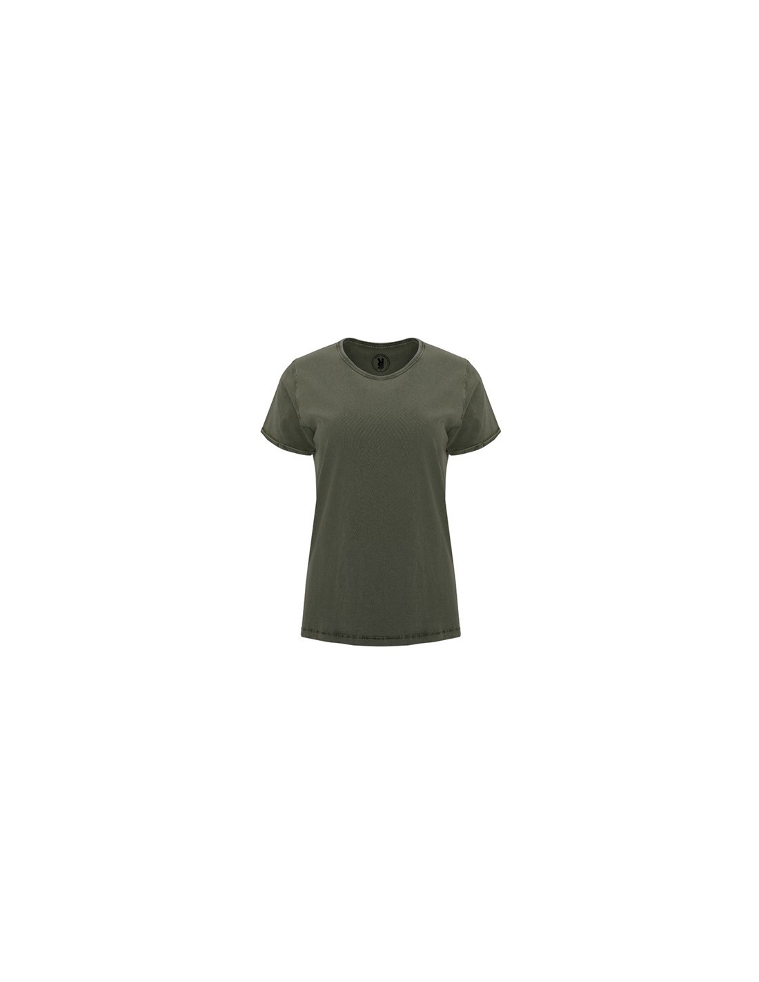 Camiseta de manga corta efecto jeans para mujer. Cuello fino redondo en canalé 1x1 con cubrecosturas de refuerzo de hombro a hombro. Doble costura en sisas. Apertura de manga con dobladillo.