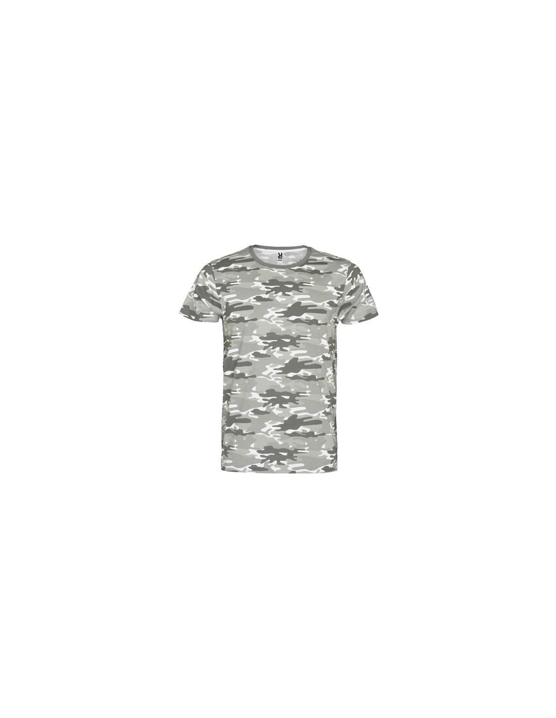 Camiseta manga corta, estampado camuflaje y cuello redondo. Refuerzo de 4 capas con cubrecosturas en la parte interior de cuello y hombros. Costuras laterales.