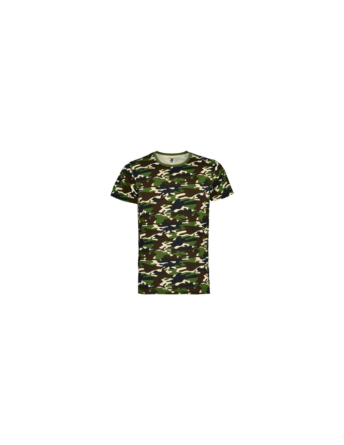 Camiseta manga corta, estampado camuflaje y cuello redondo. Refuerzo de 4 capas con cubrecosturas en la parte interior de cuello y hombros. Costuras laterales.