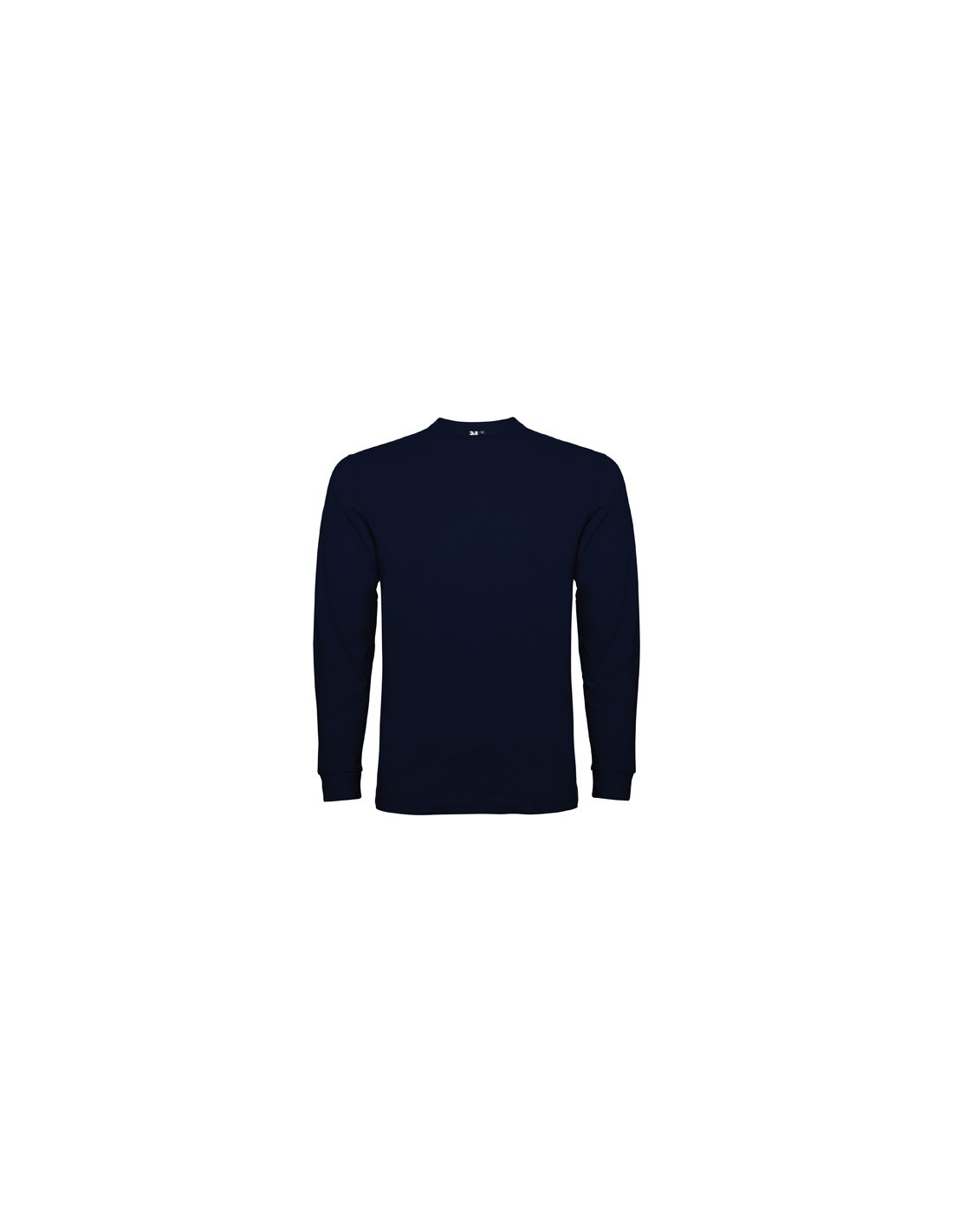 Camiseta de manga larga, tejido tubular, con cuello redondo de 4 capas y puños canalé 1x1. Cubrecosturas reforzado en cuello y hombros.
