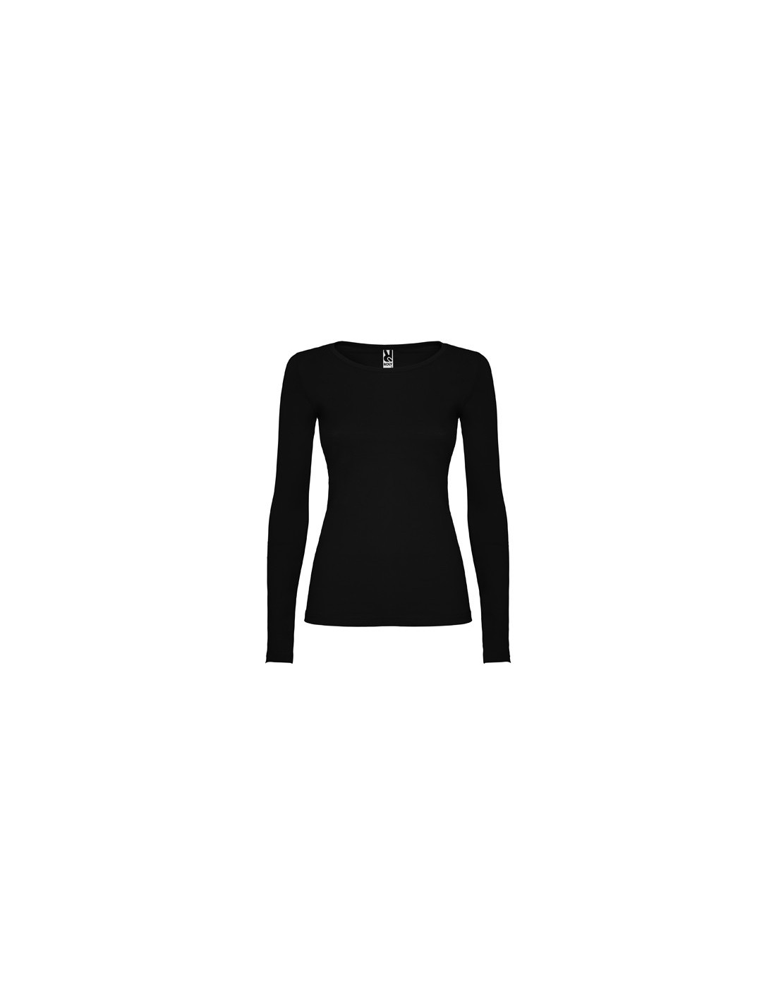 Camiseta semientallada, de manga larga y cuello acabado con ribete fino. Sin puños. Costuras laterales.