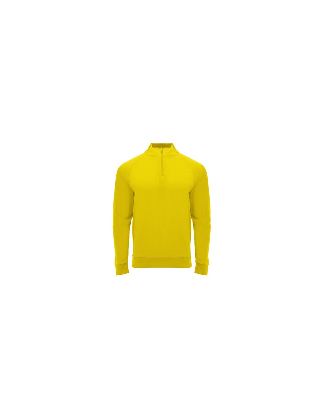 Sudadera de manga ranglán, con Interior perchado, cuello con media cremallera y cubrecosturas de refuerzo en su interior a tono. Parte posterior del cuello, puños y bajo en canalé 1x1.