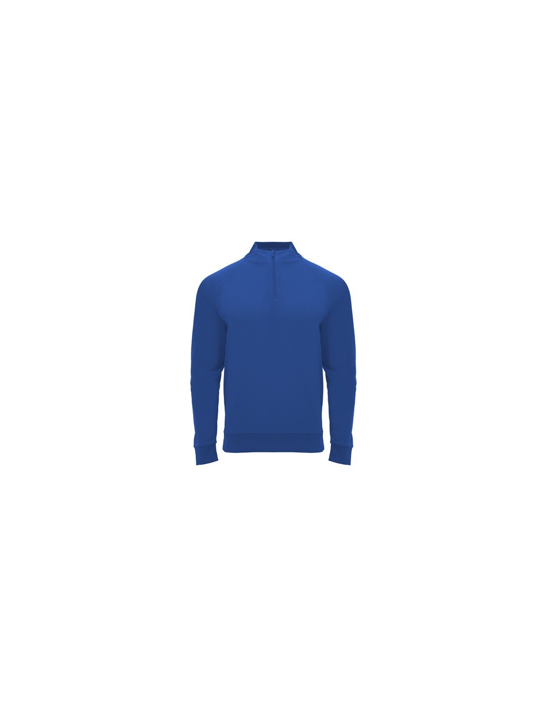 Sudadera de manga ranglán, con Interior perchado, cuello con media cremallera y cubrecosturas de refuerzo en su interior a tono. Parte posterior del cuello, puños y bajo en canalé 1x1.