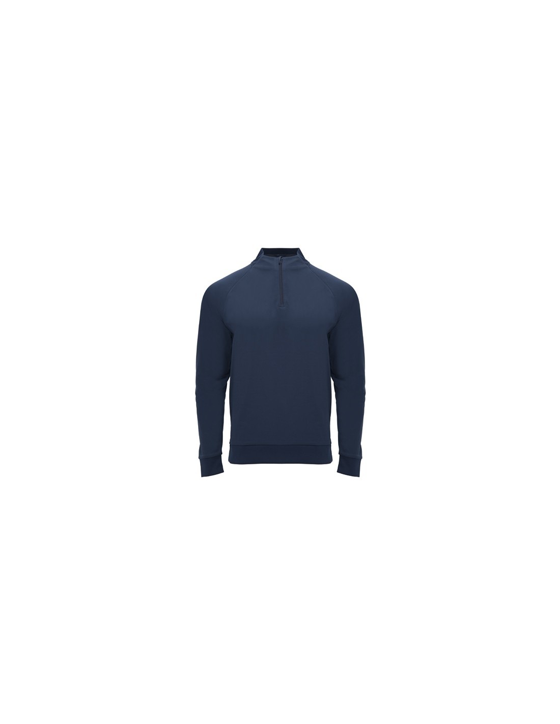 Sudadera de manga ranglán, con Interior perchado, cuello con media cremallera y cubrecosturas de refuerzo en su interior a tono. Parte posterior del cuello, puños y bajo en canalé 1x1.