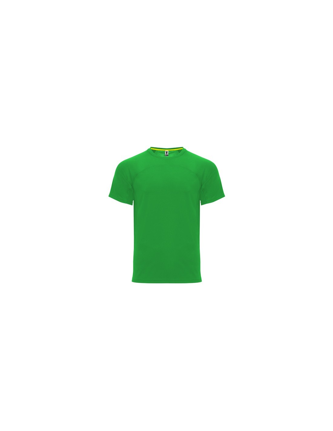 Camiseta técnica de manga ranglán unisex. Combinación de dos tejidos, frontal interlock y espalda rejilla 3D, ofrece un rendimiento versátil y suave . Cubre costuras de refuerzo a contraste en color amarillo flúor. Bajo espalda ligeramente más largo que el delantero.