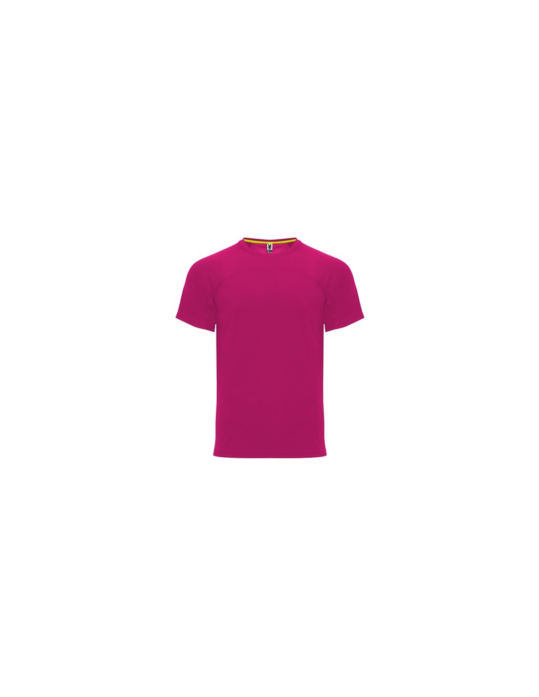 Camiseta técnica de manga ranglán unisex. Combinación de dos tejidos, frontal interlock y espalda rejilla 3D, ofrece un rendimiento versátil y suave . Cubre costuras de refuerzo a contraste en color amarillo flúor. Bajo espalda ligeramente más largo que el delantero.