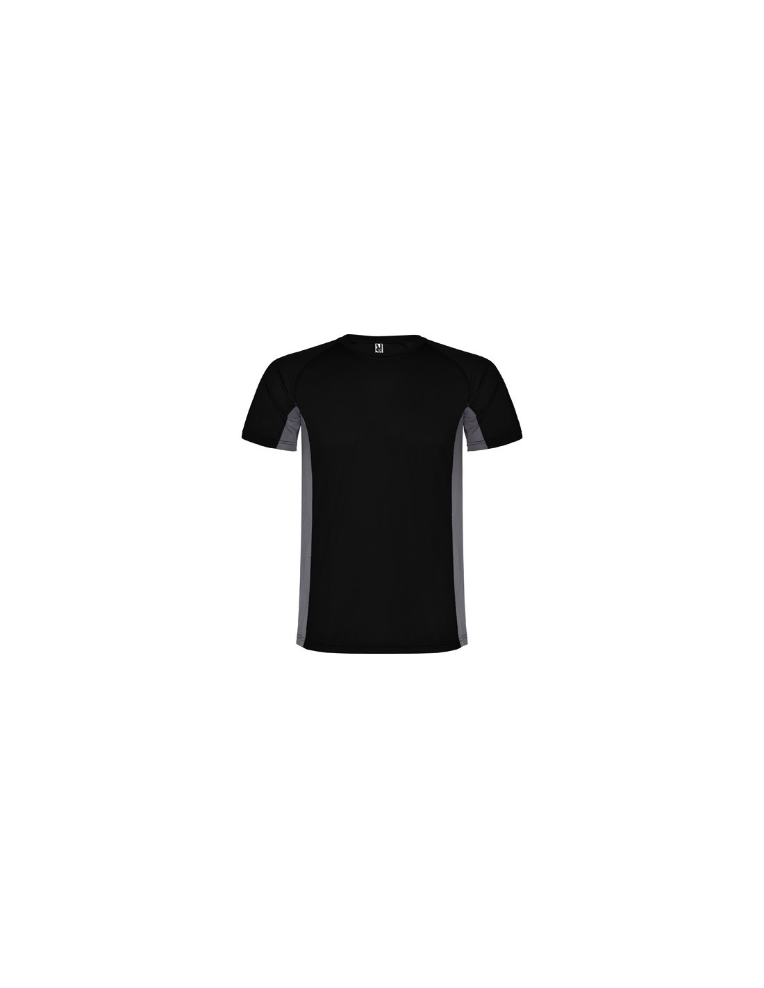 Camiseta técnica combinada con dos tejidos de poliéster, manga corta de estilo ranglán. Tejido principal bird's eye y paneles laterales e interior de la manga con tejido micro perforado. Cuello redondo con cubrecosturas de refuerzo en su interior. Camiseta de tejido confortable y fácilmente adaptable al cuerpo.