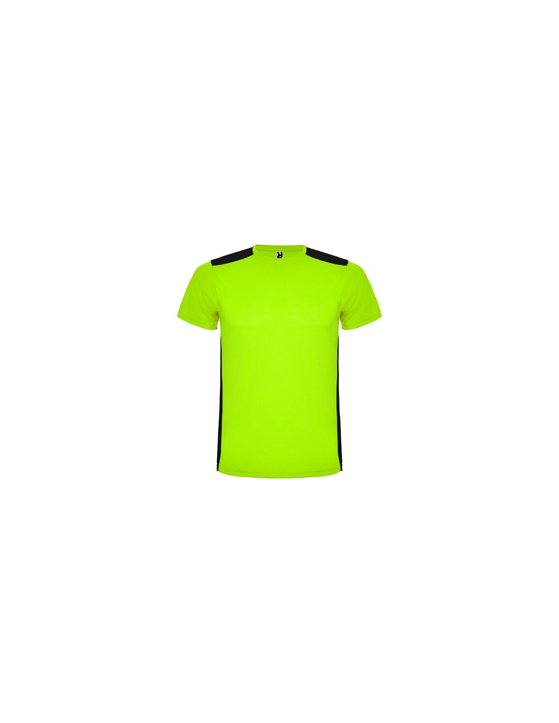 Camiseta técnica de manga corta, con cuello redondo. Combinada en espalda y hombros con dos tejidos de poliéster. Tejido principal frontal bird´s eye y tejido rejilla 3D transpirable en la parte trasera. Tejido preparado para la absorción de humedad. Pespuntes decorativos zigzag en hombros y costados frontales. Patronaje en la espalda ligeramente mas largo.
