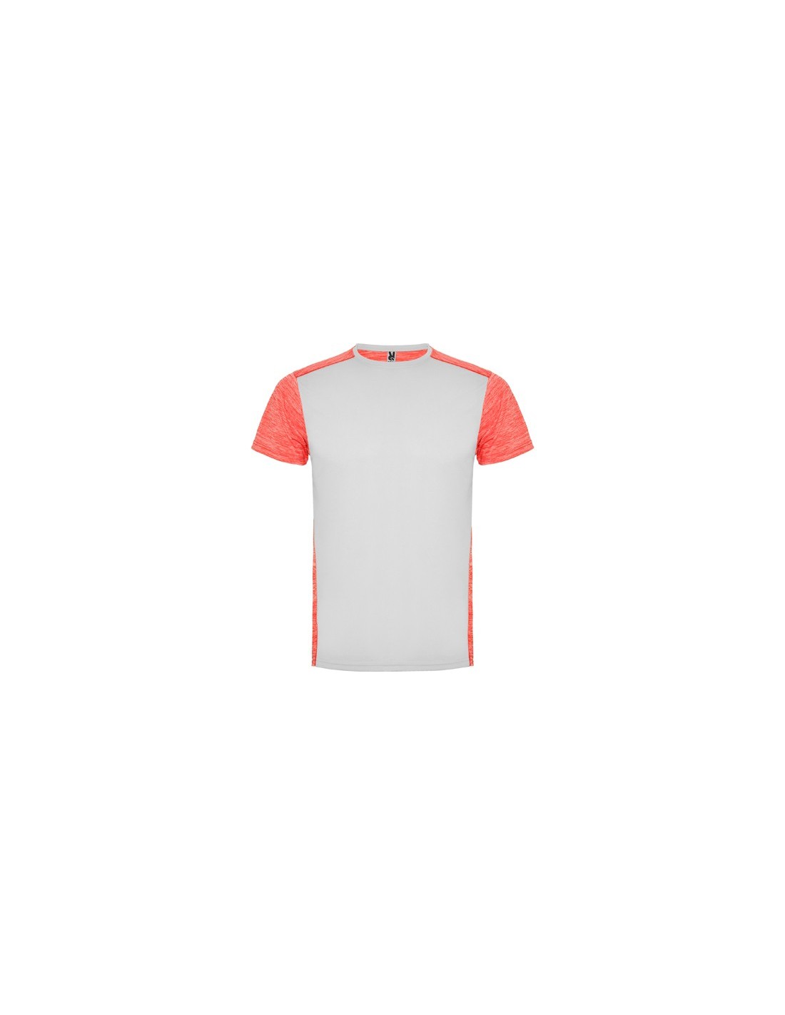 Camiseta técnica de manga corta con cuello redondo. Combinada en espalda, hombros y mangas con dos tejidos de poliéster. Tejido principal frontal bird´s eye y tejido space dye en la parte trasera. Patronaje en la espalda ligeramente mas largo.