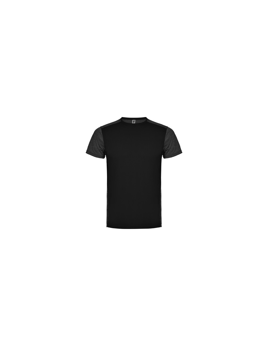 Camiseta técnica de manga corta con cuello redondo. Combinada en espalda, hombros y mangas con dos tejidos de poliéster. Tejido principal frontal bird´s eye y tejido space dye en la parte trasera. Patronaje en la espalda ligeramente mas largo.