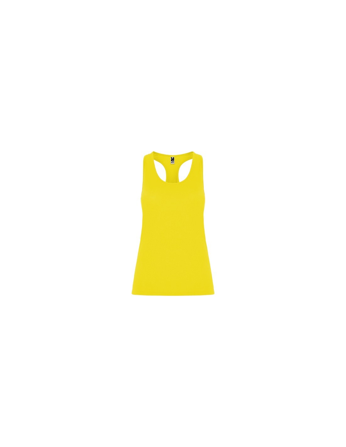 Camiseta técnica de tirantes entallada transpirable. Espalda nadadora con escote y sisas ribeteado. Tejido poliéster tacto algodón de secado fácil. Corte entallado.