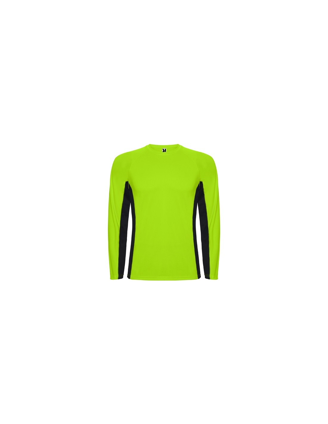 Camiseta técnica combinada, con dos tejidos de poliéster. Manga larga de estilo ranglán. Tejido principal bird´s eye y paneles laterales e interior de la manga con tejido micro perforado. Cuello redondo con cubrecosturas de refuerzo en su interior. Camiseta de tejido confortable y fácilmente adaptable al cuerpo.