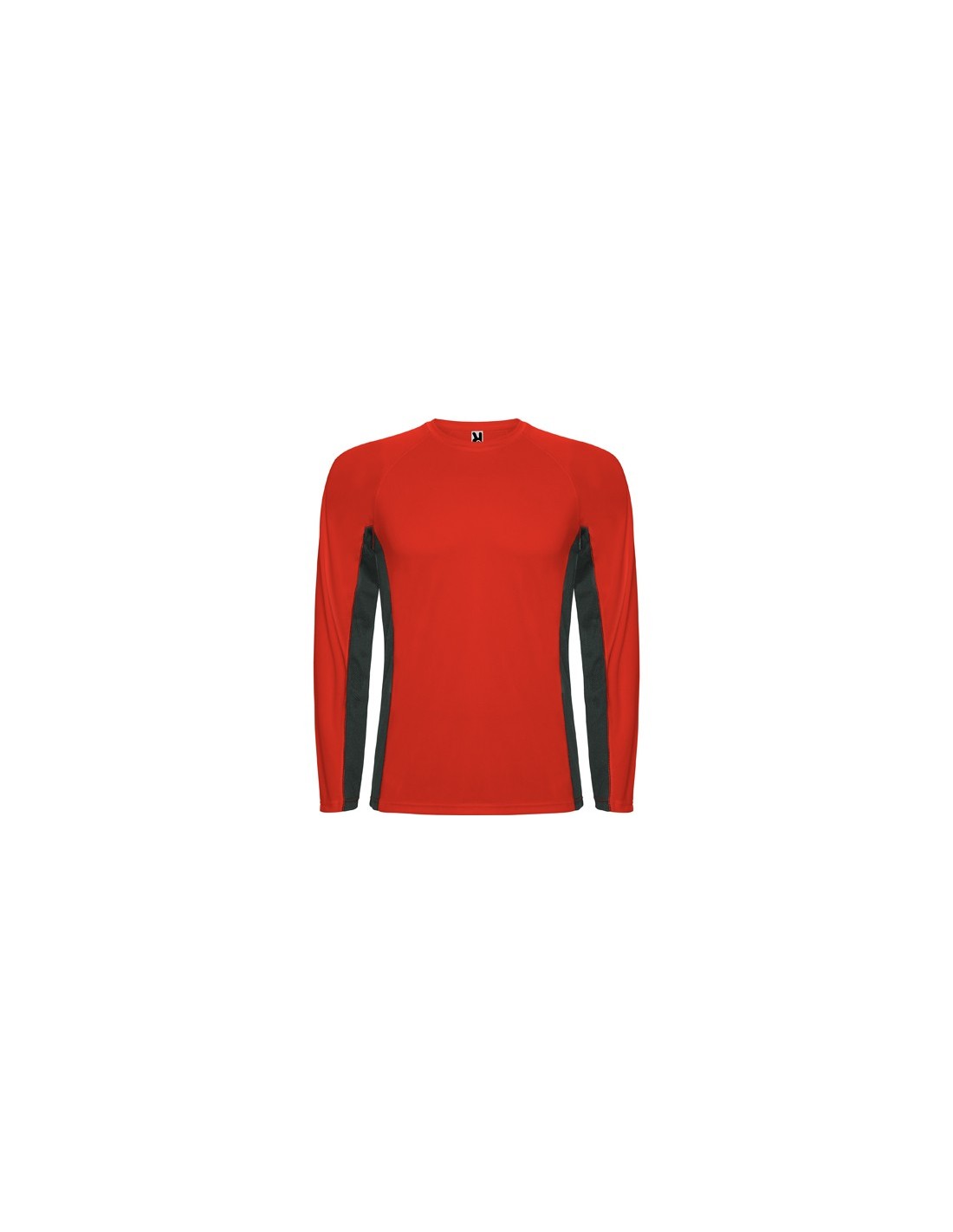 Camiseta técnica combinada, con dos tejidos de poliéster. Manga larga de estilo ranglán. Tejido principal bird´s eye y paneles laterales e interior de la manga con tejido micro perforado. Cuello redondo con cubrecosturas de refuerzo en su interior. Camiseta de tejido confortable y fácilmente adaptable al cuerpo.