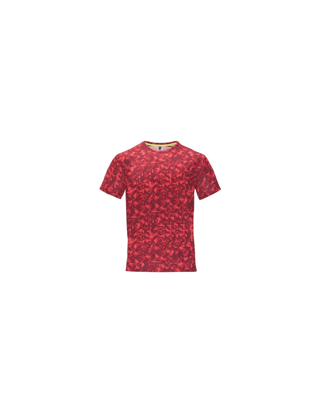 Camiseta técnica de manga corta estampada. Cuello redondo con cubre costuras de refuerzo a contraste en color amarillo flúor. Paneles laterales en interior de manga y en los hombros con remallado a tono. Tejido suave, ligero y transpirable, fácil secado.