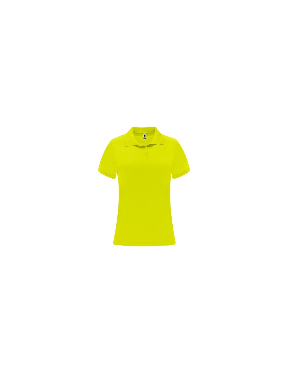 Polo técnico de manga corta para mujer. Cuello tricotosa con tapeta de tres botones. Corte entallado.