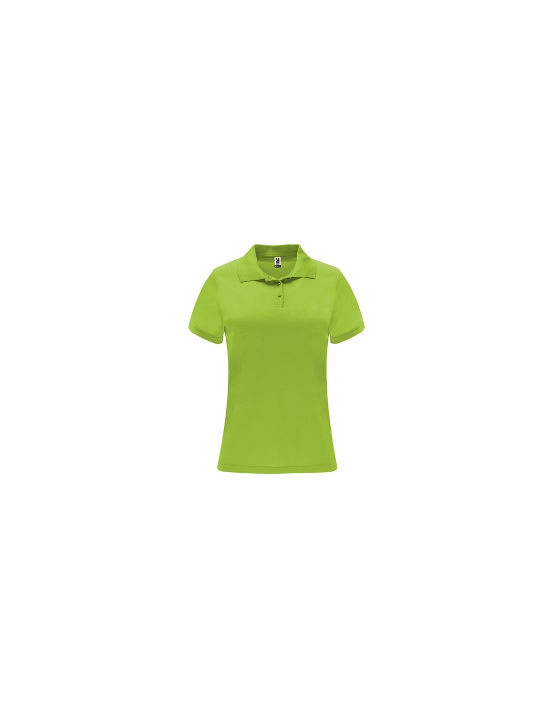 Polo técnico de manga corta para mujer. Cuello tricotosa con tapeta de tres botones. Corte entallado.