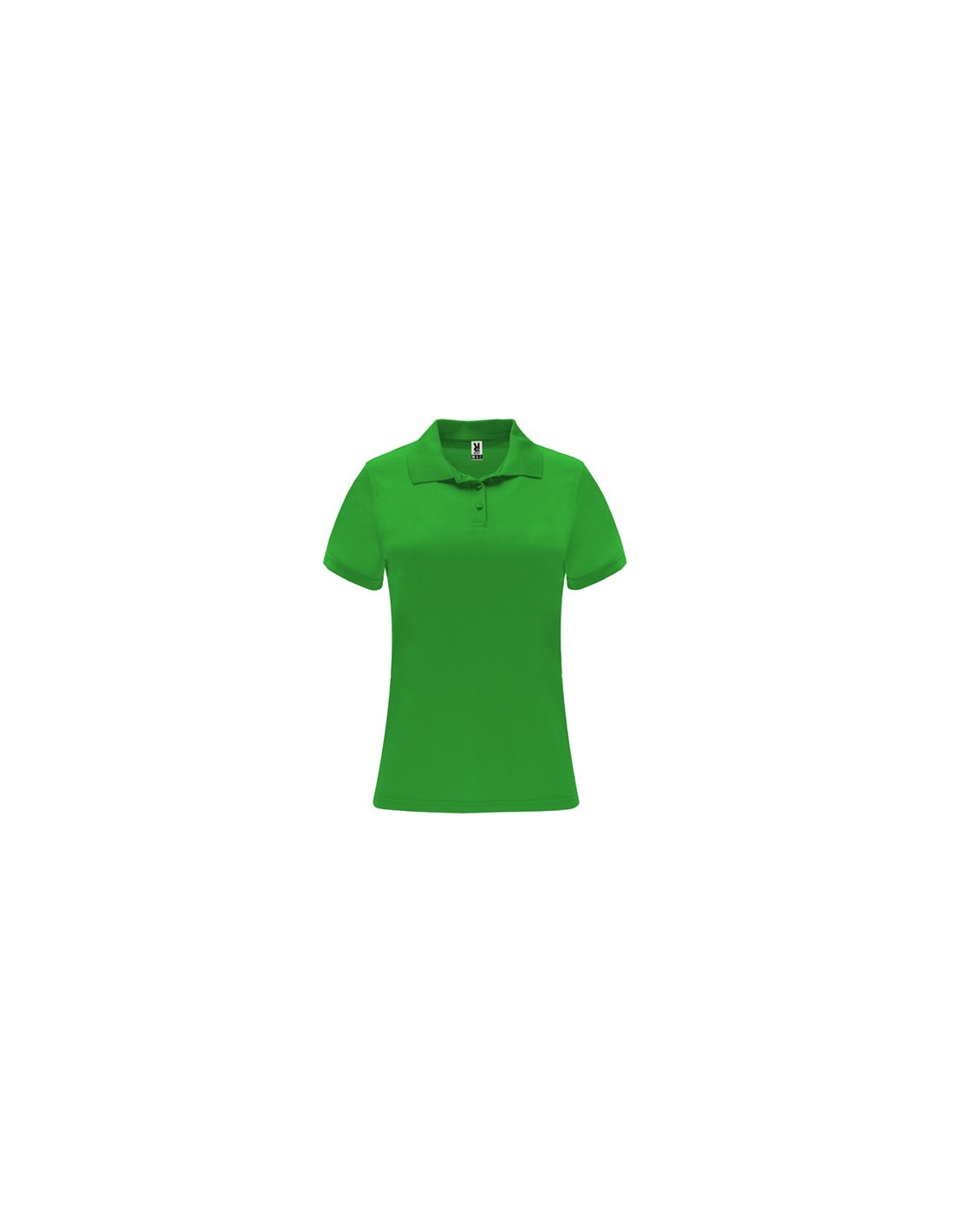 Polo técnico de manga corta para mujer. Cuello tricotosa con tapeta de tres botones. Corte entallado.