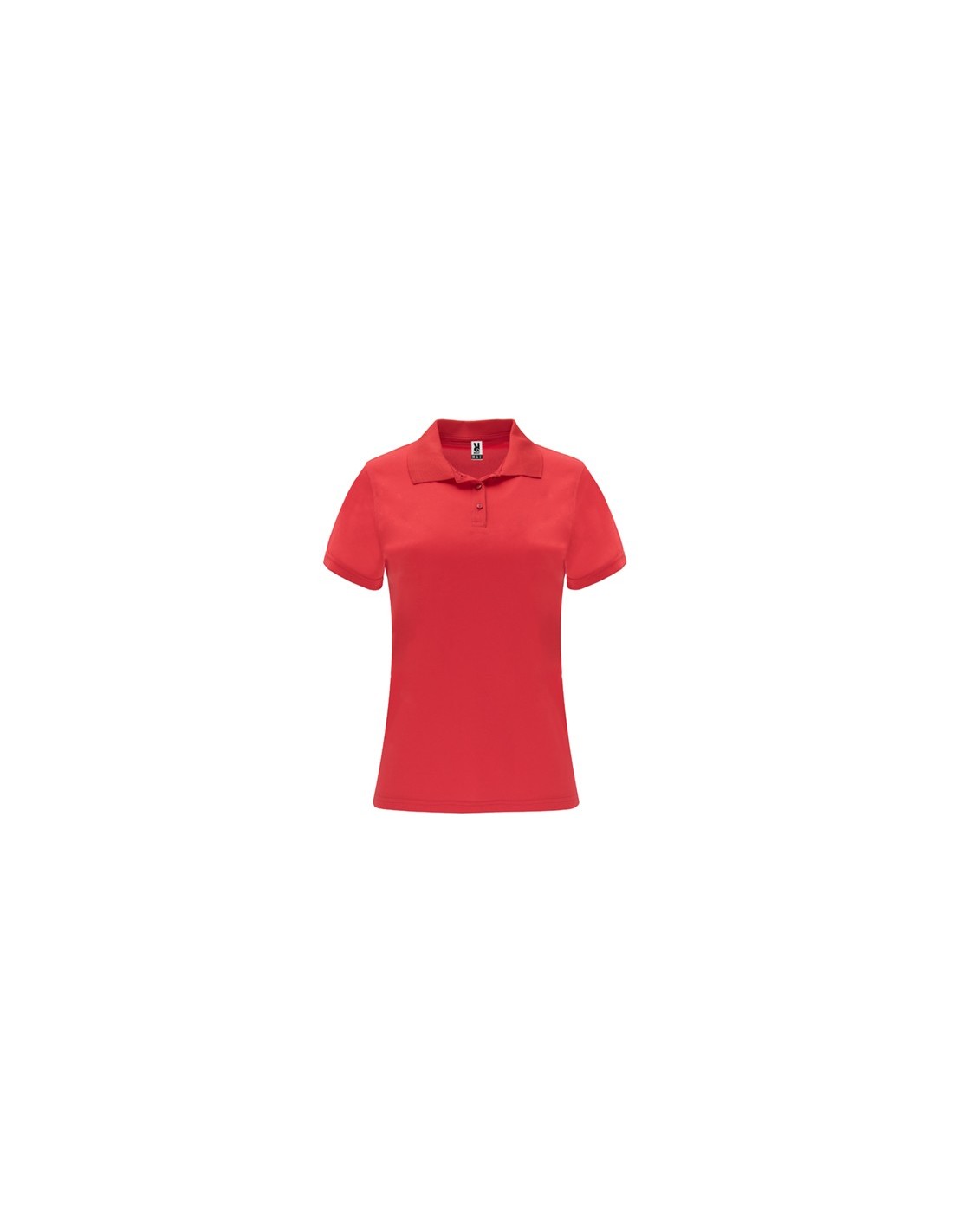 Polo técnico de manga corta para mujer. Cuello tricotosa con tapeta de tres botones. Corte entallado.