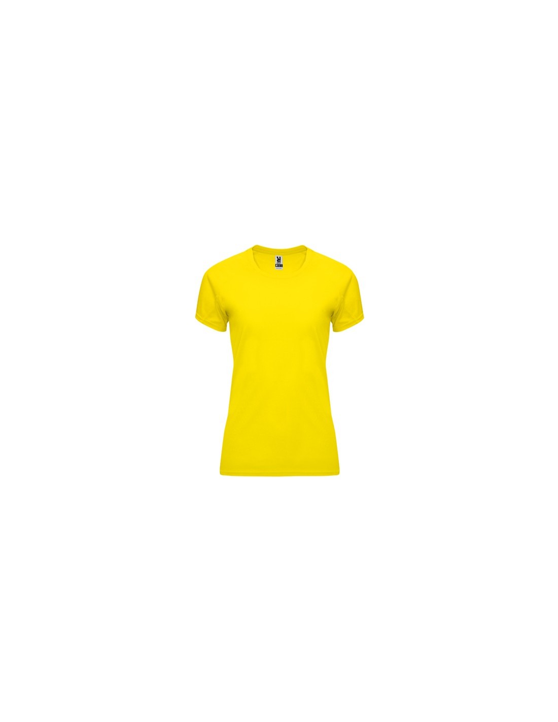 Camiseta técnica entallada de manga corta ranglán para mujer, con cuello redondo y cubrecosturas a tono. Paneles inferiores en mangas. Remallado a tono en sisa y panel de manga. Tejido CONTROL DRY.