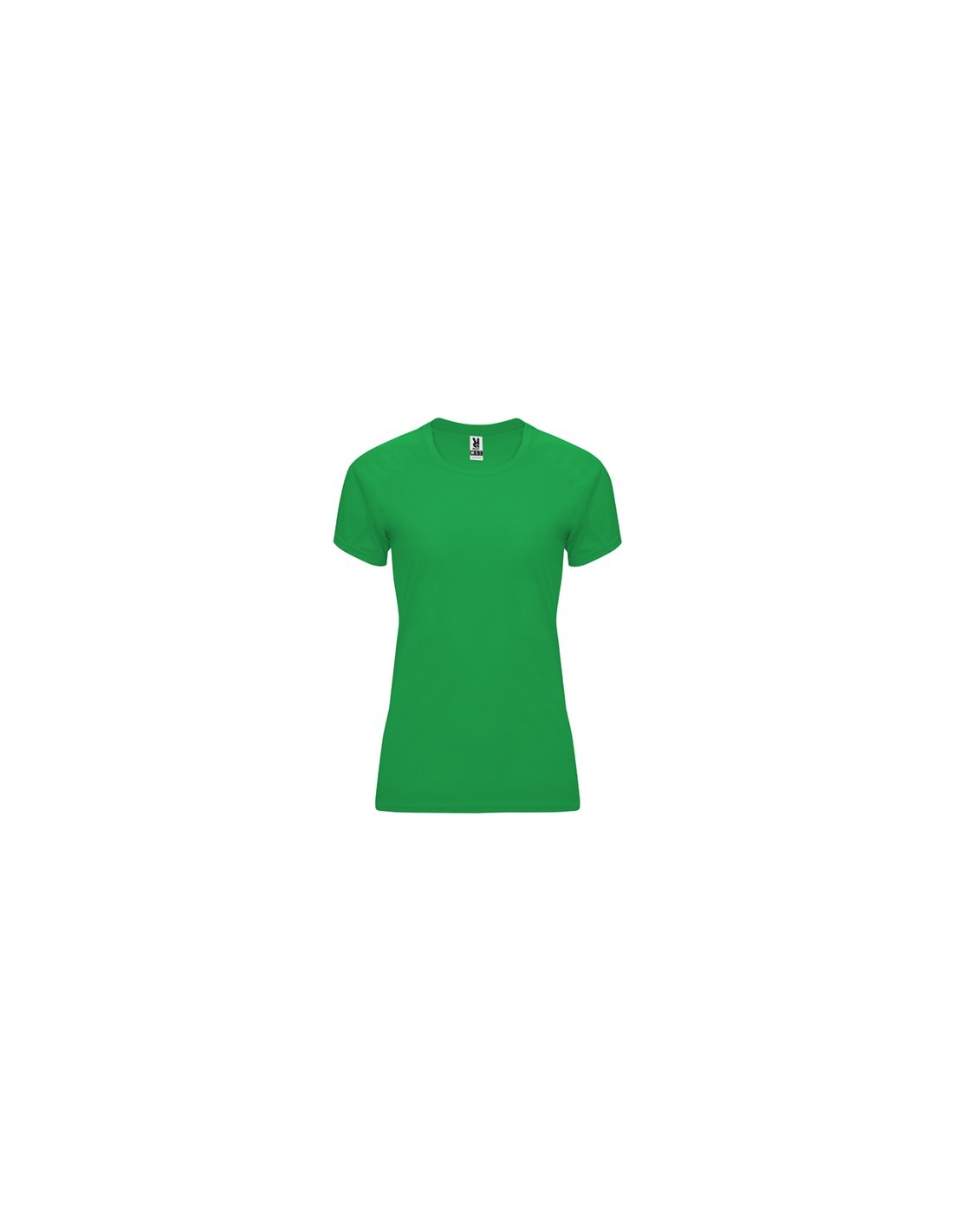 Camiseta técnica entallada de manga corta ranglán para mujer, con cuello redondo y cubrecosturas a tono. Paneles inferiores en mangas. Remallado a tono en sisa y panel de manga. Tejido CONTROL DRY.
