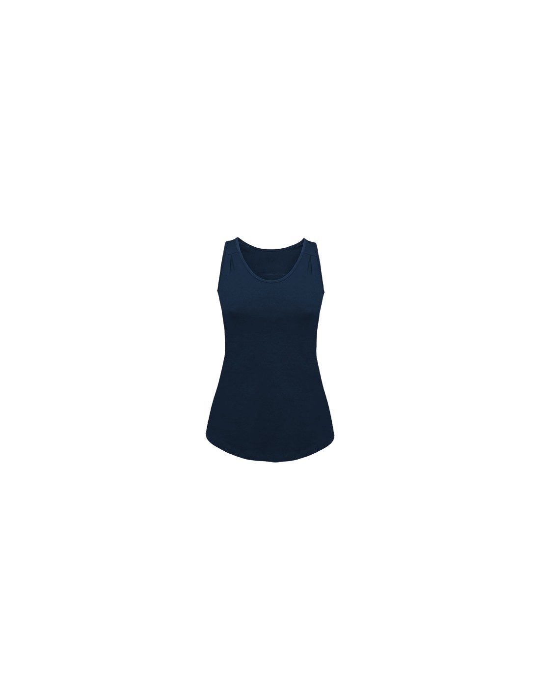 Camiseta con detalle de pliegues en tirantes. Tejido de tacto suave y agradable. Corte entallado en punto liso con costuras laterales. Bajos con forma, dándole un diseño actual.