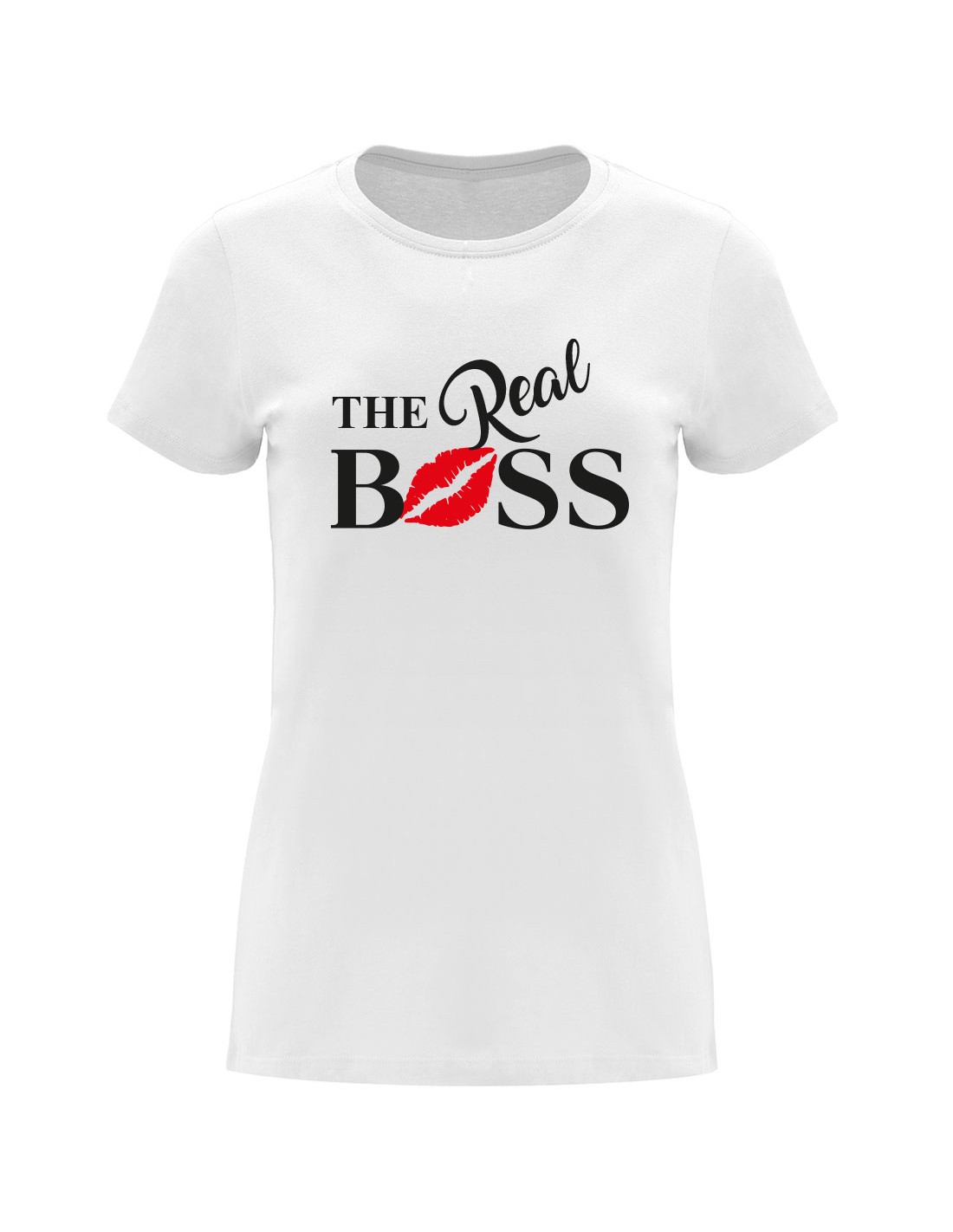 Camiseta de manga corta entallada para mujer. Cuello redondo en canalé 1x1. Cubrecosturas reforzado en cuello.