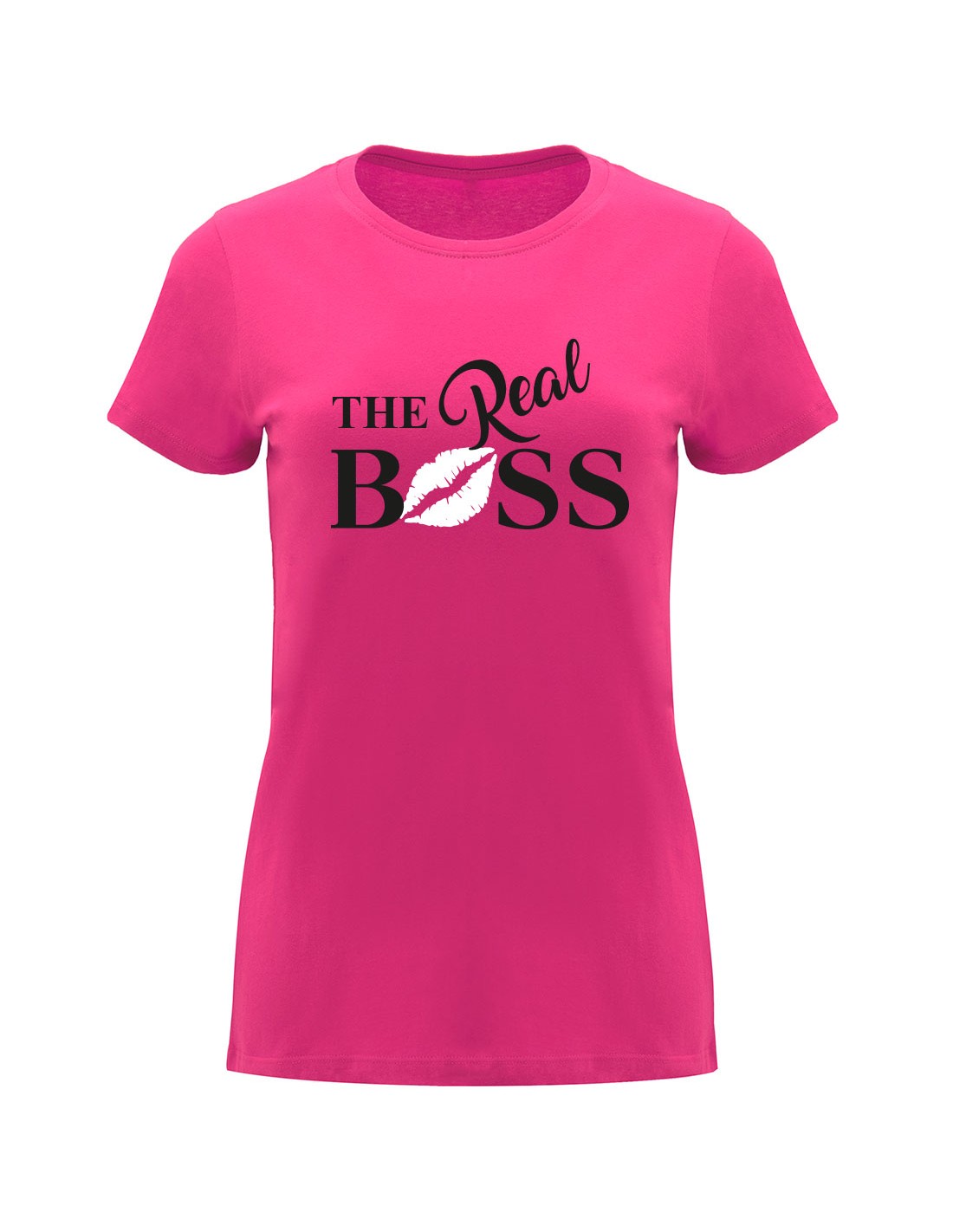 Camiseta de manga corta entallada para mujer. Cuello redondo en canalé 1x1. Cubrecosturas reforzado en cuello.