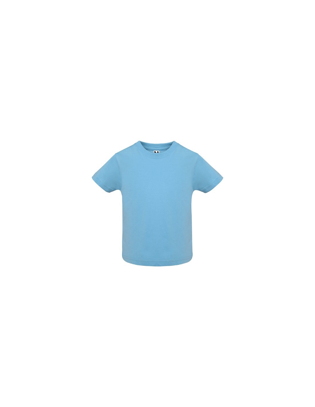 Camiseta de manga corta especial para bebé, confeccionada con tejido en galga fina y acabado compactado. Cuello redondo y apertura en el hombro con corchetes desde la talla 6m a 18m. Talla 2A sin apertura en el hombro. Costuras laterales.