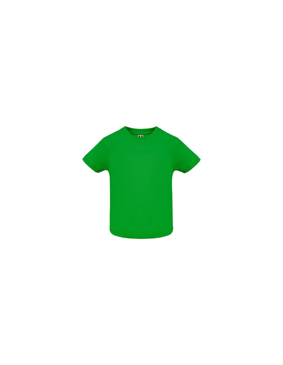 Camiseta de manga corta especial para bebé, confeccionada con tejido en galga fina y acabado compactado. Cuello redondo y apertura en el hombro con corchetes desde la talla 6m a 18m. Talla 2A sin apertura en el hombro. Costuras laterales.