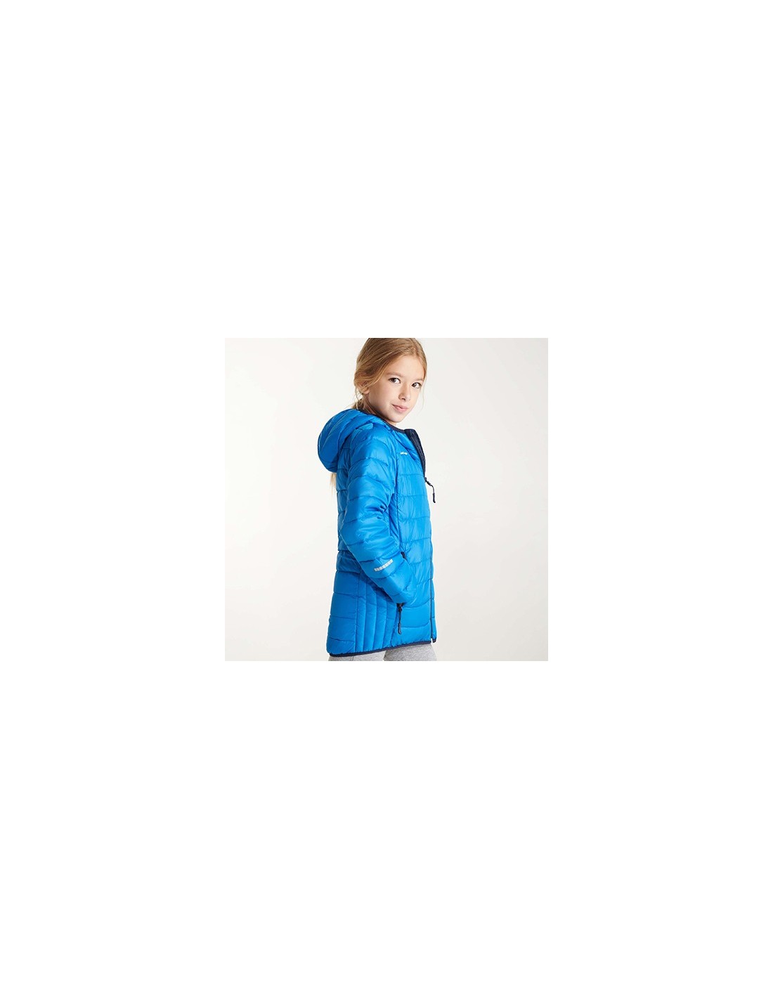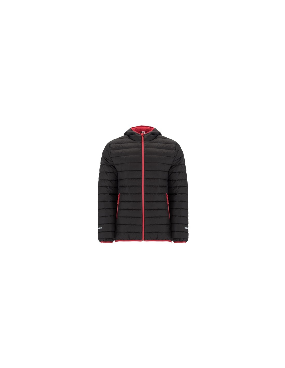 Parka deportiva acolchada con relleno tacto pluma. ·Cremallera frontal invertida a contraste con protector de barbilla y tirador. ·Capucha ajustada fija. ·Bolsillos laterales a contraste con cremallera invertida y tirador. ·Detalles reflectantes en mangas y espalda. ·Patronaje del bajo 4 cm más largo que el modelo NORWAY. ·Capucha, puños y bajos con ribete elástico a contraste. ·Incluye bolsa de transporte.