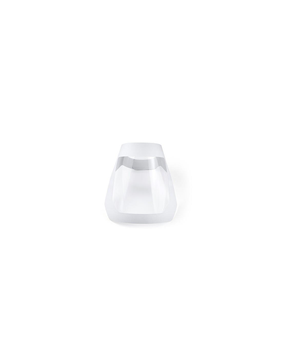 Pantalla facial reutilizable flexible y ligera. Realizada en cartón laminado blanco y PET. Fácil de personalizar. Cierre ajustable con velcro negro.Acolchado de goma espuma para un cómodo ajuste a la frente. Diseño contra salpicaduras.