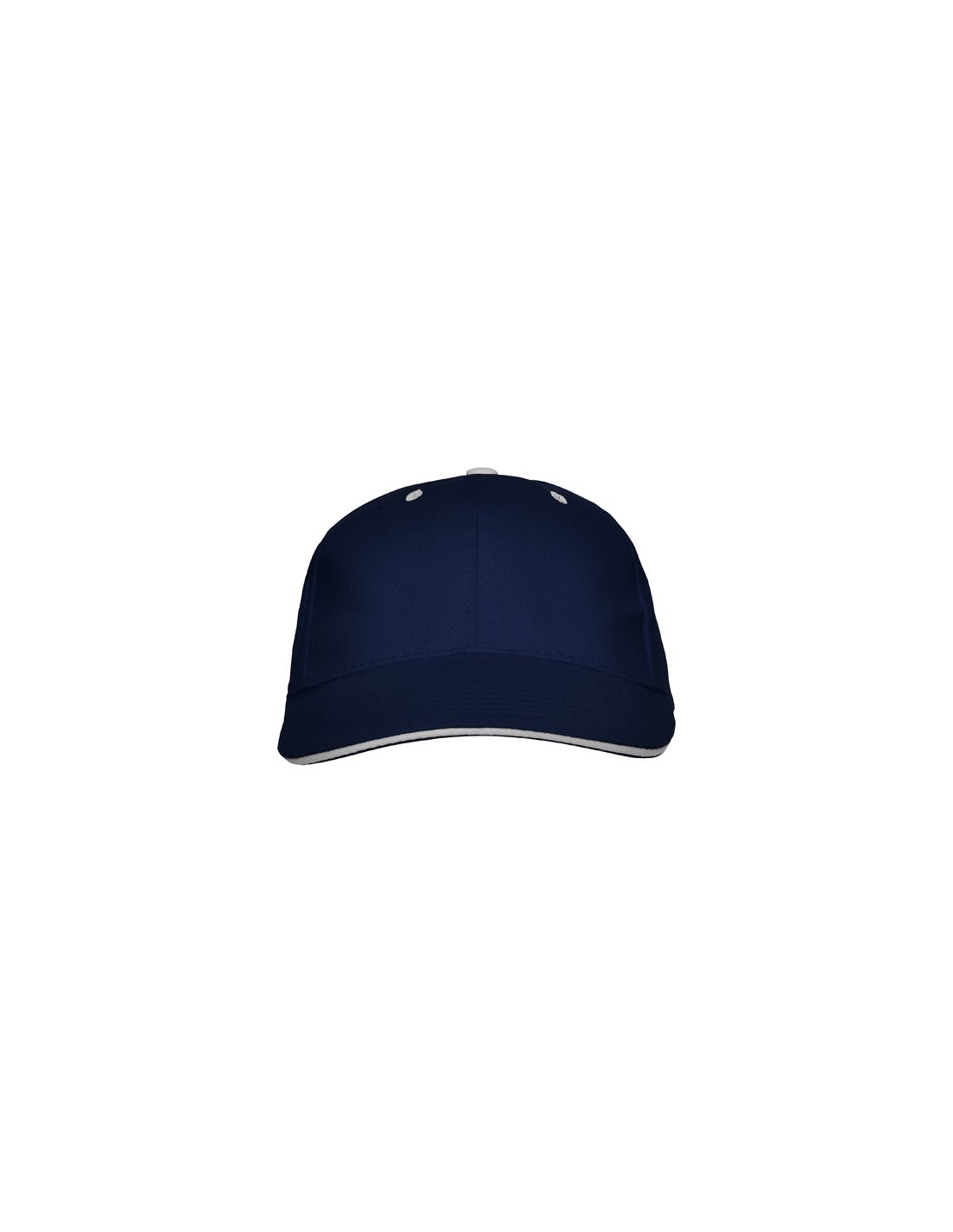 Gorra 6 paneles con sándwich a contraste. 6 orificios de ventilación bordados a contraste. 6 líneas pespunte en visera. Cinta antisudoral en el interior. Cierre velcro.
