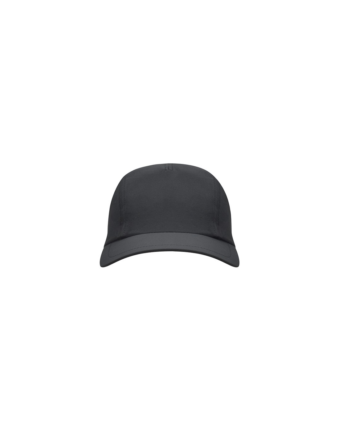 Gorra técnica de tres paneles. Tejido ligero y transpirable. Cierre ajustable de velcro en la parte posterior. Frontal especial para reprocesos.