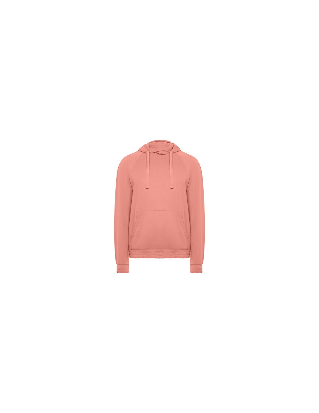 Sudadera con capucha unisex. Bolsillo canguro. Cordones planos con ojales bordados. Puños y cintura en tejido principal. Detalle de costura con relieve en mangas.