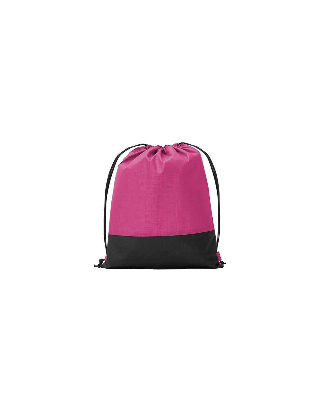 Mochila combinada en tejido non woven (no tejido), con efecto metalizado y tejido liso en color negro. Cordones en color negro.