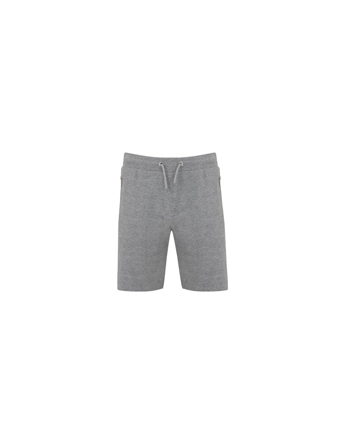 Pantalón corto con cinturilla elástica y cordón con ojales metálicos. Dos bolsillos laterales con cremalleras invertida a tono y tirador. Banda lateral a tono. Adorno de bragueta cosida. Un bolsillo trasero con broche de presión.