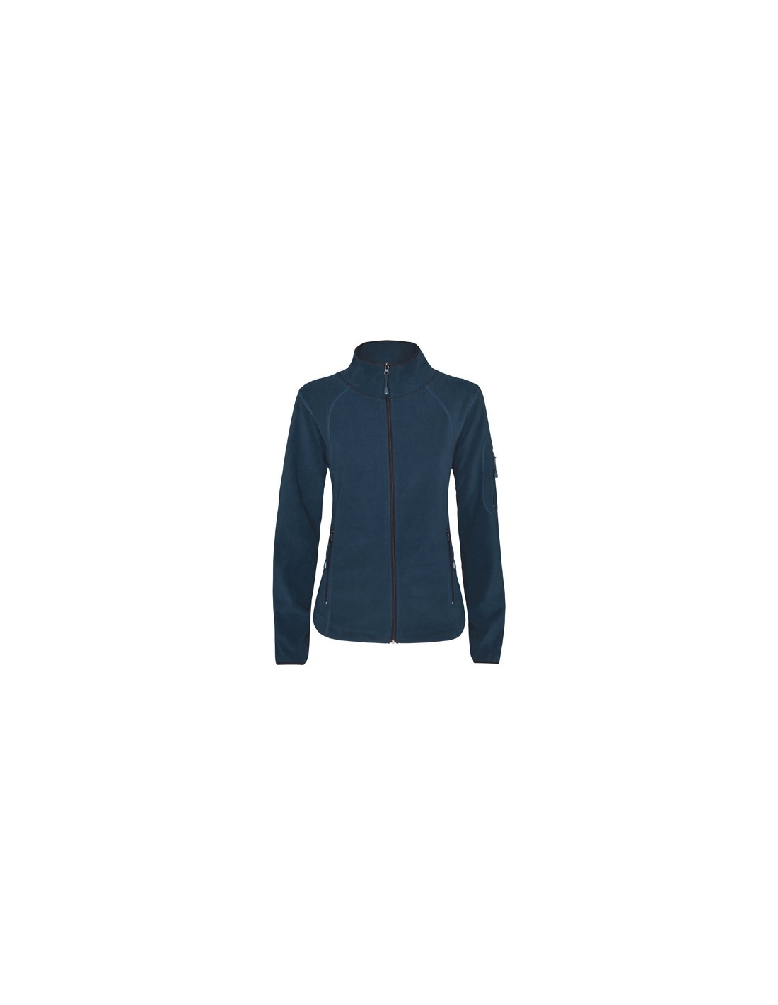 Chaqueta micropolar para deporte al aire libre, con cuello alto y manga larga con ribetes en contraste. Bolsillo con cremallera en manga izquierda y cremallera central, ambas en contraste. Costuras en lateral y pecho. Codera en el mismo tejido.