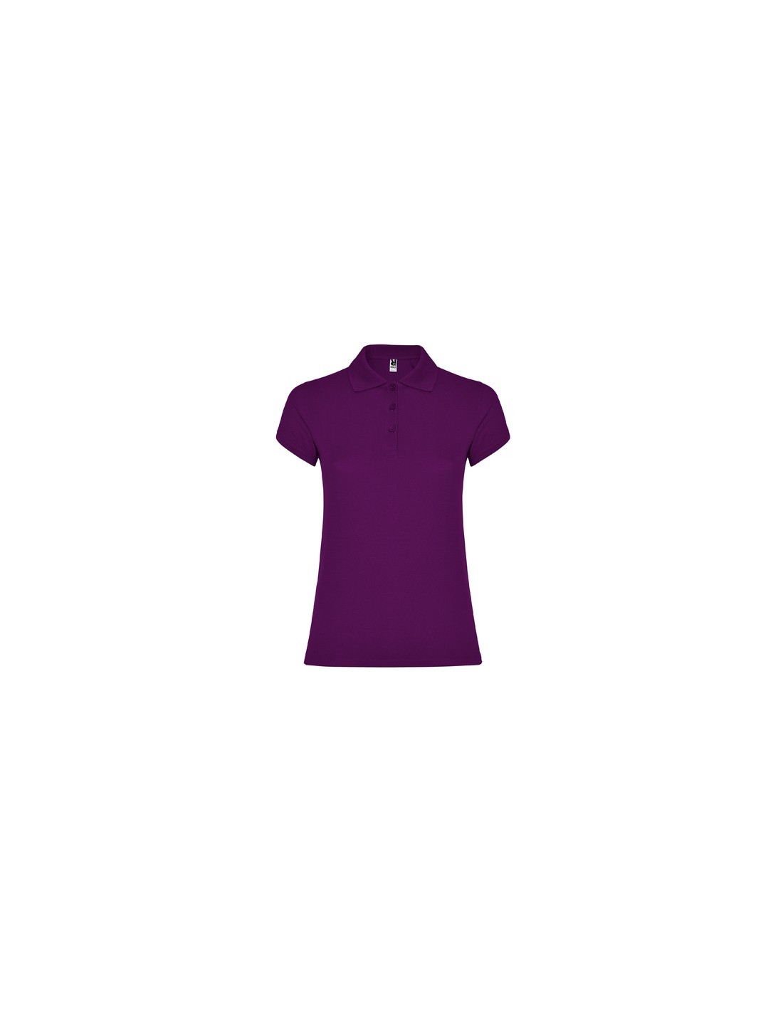 Polo de mujer de manga corta. Cubrecosturas reforzado en el interior del cuello. Cuello y ribete de manga acanalado. Costuras laterales y corte ajustado. Tapeta fina con tres botones. Aperturas en los laterales del bajo.