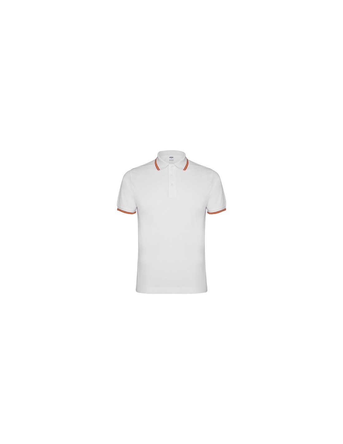 Polo de manga corta, cuello y bocamangas jackard con tapeta de tres botones. Cubrecosturas reforzado en cuello. Adorno de bandera bordado en la espalda.