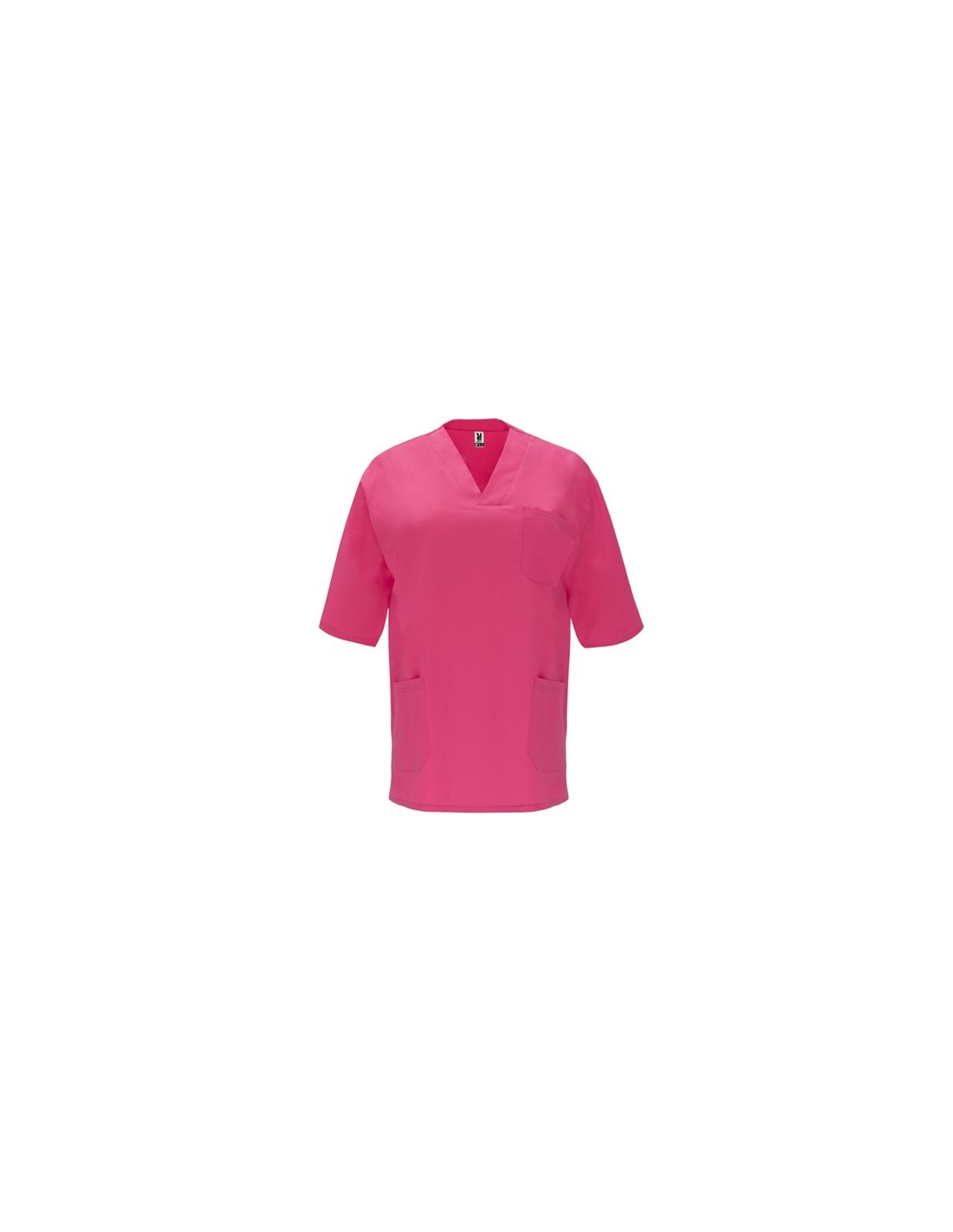 Casaca de servicios unisex de manga corta. · Escote de pico cruzado. · Un bolsillo en pecho y dos bolsillos laterales. · Aperturas laterales.